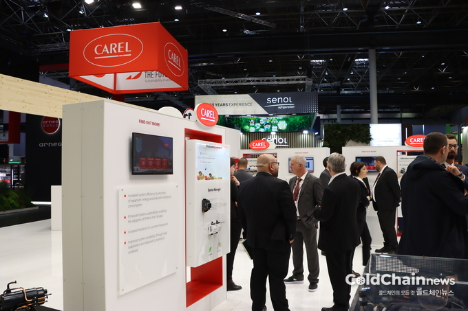 카렐은 매장단위에서 냉장·공조·조명·전력 등을 통합 제어하는 플랫폼을 선보이며 실시간 데이터기반 에너지최적화 솔루션을 강조했다. 외부 온도, 매장 이용패턴, 부하변화 등을 반영해 냉각강도를 자동으로 조절함으로써 에너지소비를 최소화하는 것이 특징이다. 또한 CO₂ 냉동시스템제어기술을 선보이며 자연냉매가 보편화된 글로벌시장에 최적화된 솔루션도 강조했다.