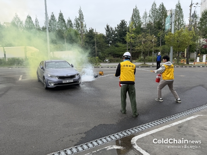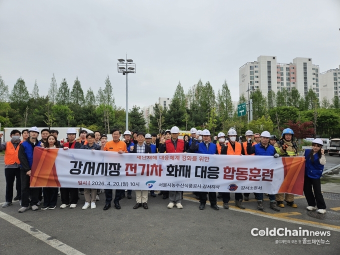 서울시농수산식품공사(사장 문영표) 강서지사는 전기차 화재 대응역량 강화를 위해 4월20일 강서소방서와 협력해 화재 대응 합동훈련을 실시했다.