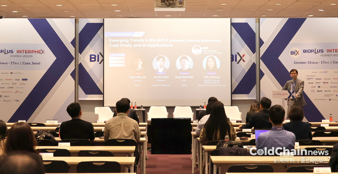 행사 셋째날인 10월17일 개최된 ‘바이오 소부장 및 콜드체인 동향과 AI활용 사례’ 컨퍼런스에는 이균민 한국과학기술원 교수를 좌장으로 △김주은 국민대학교 부교수 △배성훈 윌로그 대표 △Kok-Li Kwang Scientific Affairs & TCS, AP, West Pharmaceutical Services Director 등이 패널로 참석해 발표와 토론을 진행했다.