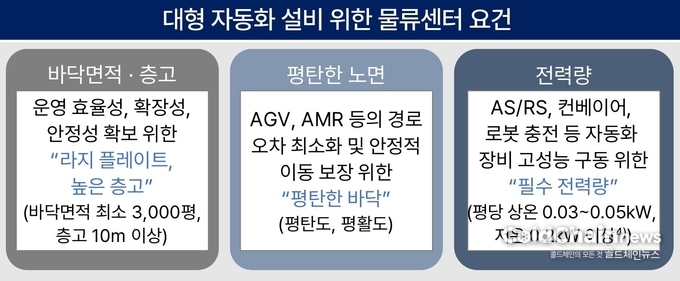 풀필먼트센터를 중심으로 확대되고 있는 AMR·AGV·AS/RS 등 자동화설비 투자도 주목할 경향이다. 이러한 흐름 속 저온물류센터 역시 높은 층고, 평탄한 바닥, 충분한 전력용량 확보가 핵심 경쟁요소로 부상했다. 보고서는 △AS/RS △컨베이어 △로봇충전 등 자동화장비 성능을 구현하는 저온물류센터의 경우 평당 0.2kW 이상의 전력확보가 필수적이라고 판단했다.