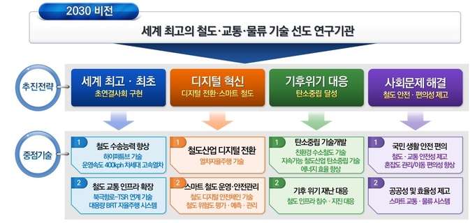 한국철도기술연구원 1996년 설립 이래 철도, 대중교통, 물류 전반의 기술혁신을 선도해 왔다. 현재 368명의 연구인력과 2025년 기준 연간 1,223억원의 연구예산을 바탕으로 피지컬AI기반 지능형물류, 물류안전관리, 인터모달(복합운송)기술 등 미래 물류산업의 핵심분야를 집중 연구하고 있다.