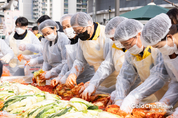 가락시장과 강서시장은 올해도 겨울이 힘겨운 이웃에 김장김치 10만포기를 기부하는 국내 최대규모 김장나눔 행사를 개최했다. 서울시농수산식품공사(사장 문영표)는 가락시장 사회공헌법인인 희망나눔마켓 주관으로 11월17일 가락몰 3층 하늘공원에서 '2025 김장나눔 시민대축제'를 성료했다고 밝혔다. 올해 들어 가장 추운 날씨였지만 유통인, 시민, 기업체 자원봉사자와 공사 임직원 등 총 564명이 참석한 이번 행사에서는 현장에서 봉사자들이 담근 김치 포함 10kg상자 1만개, 총 100톤 8만포기를 서울시 400여개 복지단체에 기부하는 전달식을 가졌다. 올해는 지난해와 달리 시장 외부의 기업체(한솔섬유, 서울신용보증재단, 서울시투자기관ESG경영실무협의체 등)의 참여가 증가한 것이 눈에 띄었다. 장영일 희망나눔마켓 국장은 "18년째를 맞이한 이번 행사가 외부에 좋은 영향력을 미치는 것 같아서 실무자로서 큰 보람을 느낀다"고 말했다. 공사는 이에 앞서 11월12일 강서시장에서 '2025 강서시장 사랑의 김장나눔 행사'를 개최한 바 있다. 강서시장 유통인, 강서구새마을부녀회, 공사 임직원 등이 함께한 행사를 통해 10kg상자 2,500개, 총 25톤 2만포기를 강서구 관내