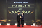 동아쏘시오홀딩스(대표 김민영)는 지난 11월20일 한국경영인증원이 주최하는 제24회 글로벌스탠더드경영대상 시상식에서 '지속가능보고서 대상'을 수상했다고 밝혔다. 글로벌스탠더드경영대상은 안전경영, 투명경영 등 경영테마영역에서 기업들의 경영전략과 미래가치, 상품 및 서비스에 대한 객관적 수준을 측정해 2002년부터 매년 시상하는 종합시상제도이다. 동아쏘시오홀딩스는 매년 그룹의 사회책임경영활동 및 경영성과를 담은 동아쏘시오그룹 통합보고서 ‘가마솥’을 발행하고 있다. 올해 발행한 2024년 통합보고서에는 그룹의 정도경영 5대 카테고리인 △인권경영 △환경경영 △준법경영 △소비자중심경영 △CSR 등을 기준으로 △거버넌스 △전략 △위험관리 체계 △관리 지표 및 목표 등을 설정하고 투자자관점의 보고방식을 적용했다. 보고범위도 확대했다. 기존 바이오기술 및 제약, 도로운송산업에서 비알콜 음료산업 표준을 새롭게 수록하며 그룹 전반의 지속가능성과 관련 정보를 투명하게 공개하는 데 주력했다. 동아쏘시오홀딩스의 관계자는 "신뢰성 있는 정보를 투명하게 공개하려는 노력이 긍정적인 평가를 받았다"라며 "이해관계자 친화적인 정보를 보고서에 게재하고 정도경영으로 기업가치를 높여나가겠다"고