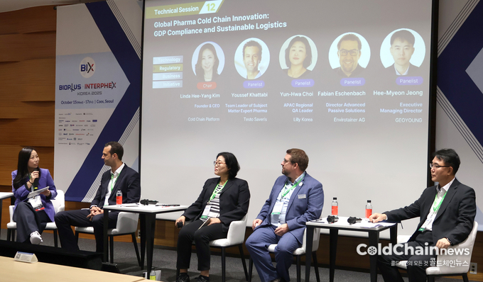 행사 둘째날인 10월16일 개최된 ‘글로벌 의약품 콜드체인 혁신: GDP(우수의약품 유통관리기준) 준수와 지속가능한 물류 전략’ 컨퍼런스에는 김희양 콜드체인플랫폼 대표를 좌장으로 Youssef Khattabi Testo Saveris Team Leader of Subject Matter Expert Pharma, 최윤화 한국릴리 전무, Fabian Eschenbach Envirotainer AG Director Advanced Passive Solutions, 정희면 지오영 전무 등이 패널로 참석해 토론을 진행했다.