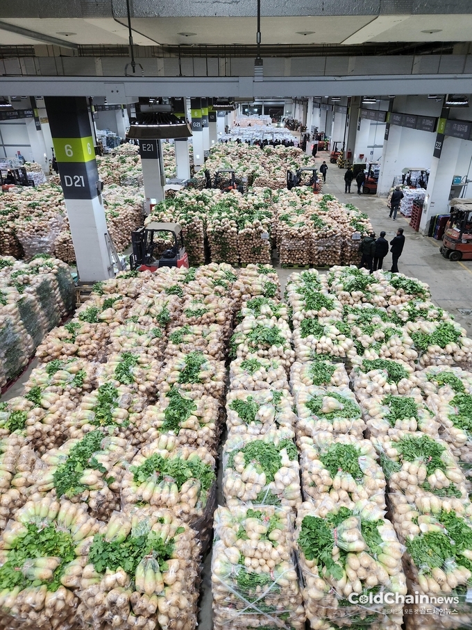 대한민국 김장철이 본격 시작되면서 국내 최대 공영도매시장인 가락시장의 채소2동은 연중 가장 분주한 모습을 보이고 있다. 지난해 12월15일 개장한 채소2동은 가락시장 김장채소류의 대부분이 거래되는 곳으로 처음 맞는 김장성수기임에도 거래물류 대책의 시스템화를 통한 혼잡도 '0'에 도전하며 생산농가와 유통인의 호평을 받고 있어 눈길을 끈다.