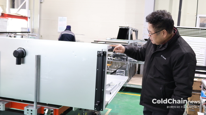 대표적으로 열차단 도어프레임 설계다. 일반적인 도어형태 쇼케이스제품은 유리나 프레임에 온도 차로 인한 결로가 생기지 않도록 히터를 장착한다.
