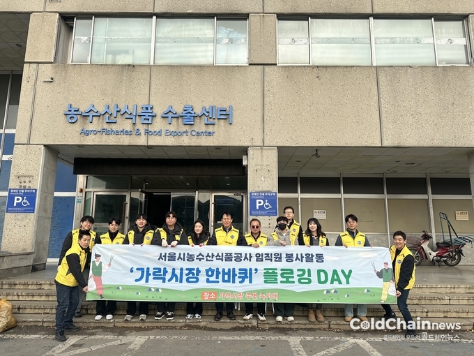 서울시농수산식품공사(사장 문영표)는 12월17일 서울 송파구 가락시장일대에서 임직원이 참여하는 친환경 사회공헌활동 '가락시장 한 바퀴 플로깅(Plogging)'을 진행했다.