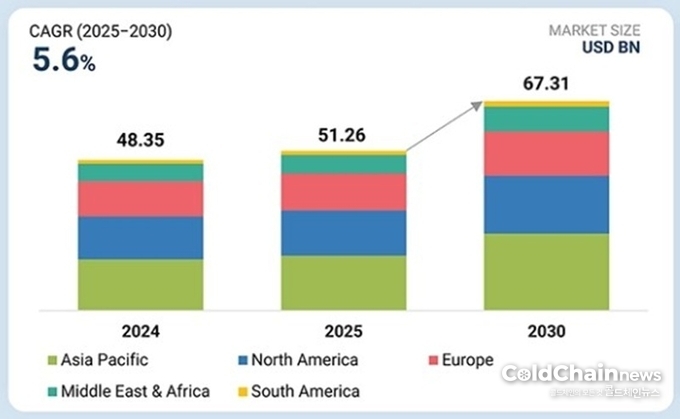 글로벌 시장조사기업 MarketsandMarkets 자료에 따르면 2025년 약 512억6,000만달러(약 75조9,600억원)규모로 평가된 글로벌 상업용 냉장시장이 2030년 약 673억1,000만달러(약 99조7,000억원)로 성장할 전망이다. 시장확장 주요 촉진요인으로 도시화 및 신선식품·가공식품 수요증가 등이 꼽힌다.