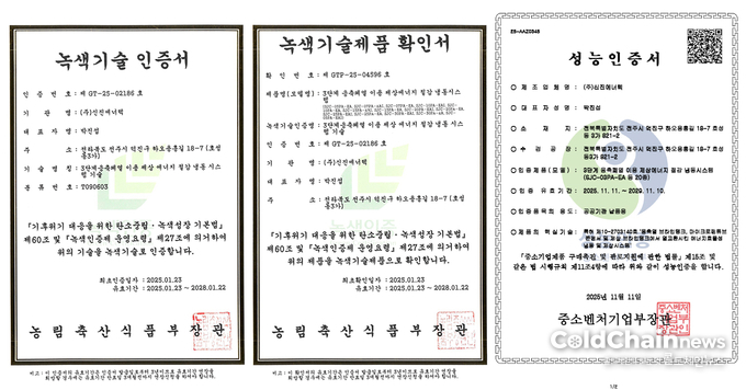 2025년 1월에는 ‘3단계 응축폐열 이용 제상 에너지 절감 냉동시스템 기술’에 대한 녹색기술인증서를 취득했다. 이와 함께 20개 제품모델을 아우르는 녹색기술제품확인서도 함께 발급받아 상용화 가능성도 공식인정받았다.