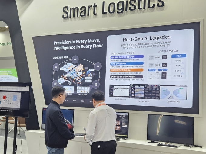 현대글로비스는 스마트물류특별관에서 피지컬AI기반 물류자동화기술역량을 선보였다. 화물의 입고·보관·선별·출고 등의 전 과정이 연결된 자동화환경을 직접 확인할 수 있는 전시구성이었다.