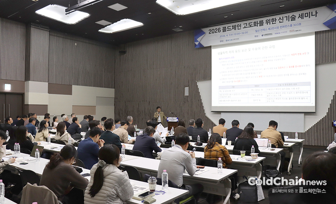 한국콜드체인협회는 4월1일 일산 킨텍스에서 열린 ‘제4회 국제콜드체인산업전’에서 ‘콜드체인 고도화를 위한 신기술 세미나’를 개최했다고 밝혔다. 식품·의약품 콜드체인유통·물류파트 관계자 및 냉장·냉동창고업 종사자 등 180여명의 참석자가 자리했다.