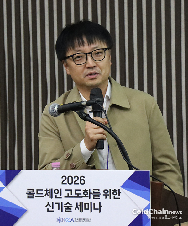 규제강화 흐름 속 IoT기반 온도모니터링 중요김찬우 CJ대한통운 TES물류기술연구소 수석연구원은 ‘콜드체인 관리의 진화: 온습도 관리에서 ESG까지’라는 주제로 콜드체인 관리패러다임이 단순한 모니터링을 넘어 데이터기반 통합 관리로 전환되는 흐름을 소개했다.