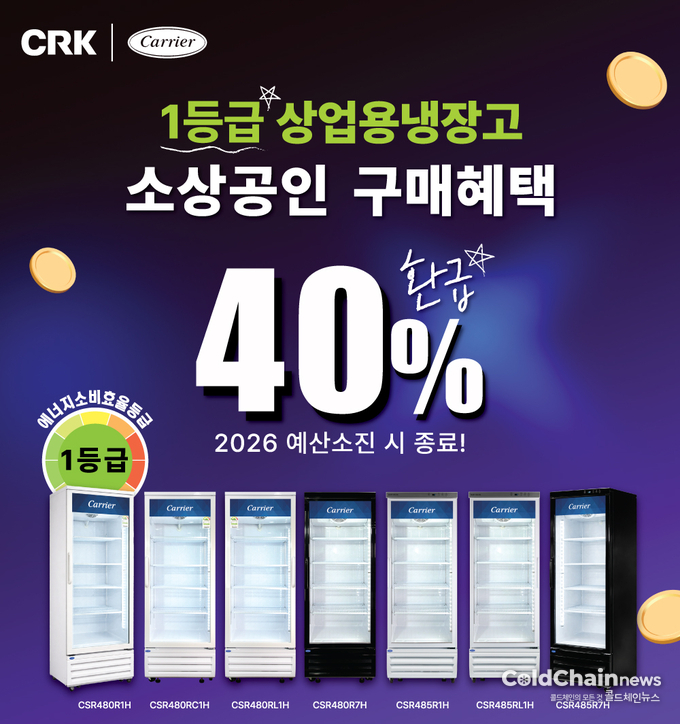 글로벌 캐리어(Carrier)와 강력한 협업을 기반으로 최고의 기술력과 경쟁력을 갖춘 국내 1위 상업용 냉동·냉장 전문기업 CRK(회장 강성희)는 4월16일 고물가와 전기요금 상승으로 운영 부담이 커진 소상공인을 위해 한국전력공사의 ‘2026년 소상공인 고효율기기 지원사업’에 참여하며 캐리어 냉장 쇼케이스 7종의 보급 확대에 나선다고 밝혔다