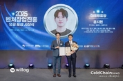 AIoT기반 공급망 인텔리전스 솔루션기업 윌로그(배성훈, 윤지현 각자대표)는 12월10일 코엑스에서 개최된 ‘2025 벤처창업진흥유공 포상’ 시상식에서 대통령표창을 수상했다고 밝혔다. 중소벤처기업부가 주최하는 벤처창업진흥유공 포상은 대한민국 혁신 성장을 주도하는 우수 벤처기업과 창업가의 혁신 의욕을 고취하고 성과를 확산하기 위해 매년 개최되고 있다. 윌로그는 독자적인 AIoT 기술로 물류산업의 디지털전환(DX)을 선도하고 폭발적인 성장을 통해 양질의 청년일자리를 창출한 공로를 인정받아 이번 대통령 표창의 주인공이 됐다. 윌로그는 2021년 설립이래 물류현장의 고질적인 비효율을 해결하며 성장해오고 있다. 기존의 타코미터나 USB 데이터로거 방식은 운송 중 실시간 확인이 불가하고 데이터 변조위험이 있어 신뢰도가 낮았다. 윌로그는 이를 극복하기 위해 자체개발한 고도화된 QR코드 기술뿐만 아니라 BLE, LTE 통신 기술이 탑재된 다양한 IoT 센서 디바이스 라인업을 구축했다. 이를 통해 온도, 습도, 충격, 기울기, 조도, 위치 등 화물의 상태데이터를 실시간으로 수집하고 별도 소프트웨어나 장비없이 운송과정 전체를 즉각 확인할 수 있는 투명한 ‘물류 인텔리전스’ 환